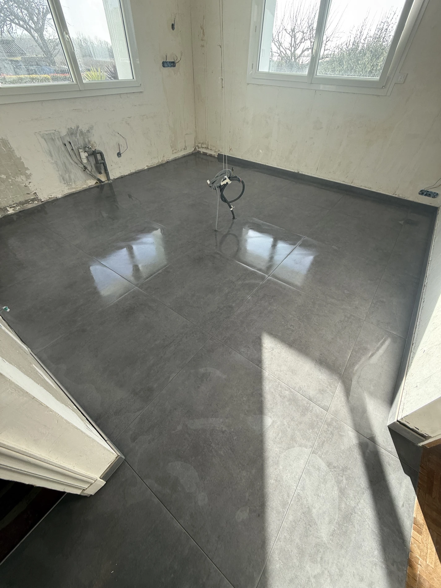 Carrelage véranda Guidel avec plancher chauffant électrique